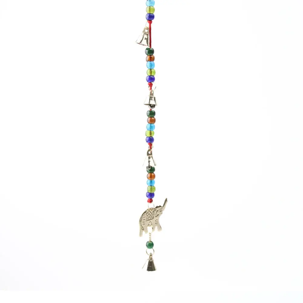 Aan het prachtige rode koord van ±70cm hangen 8 belletjes met speelse glaskralen tussen elke bel van ±18mm. Het gewicht van het geheel is ±100 gram.
