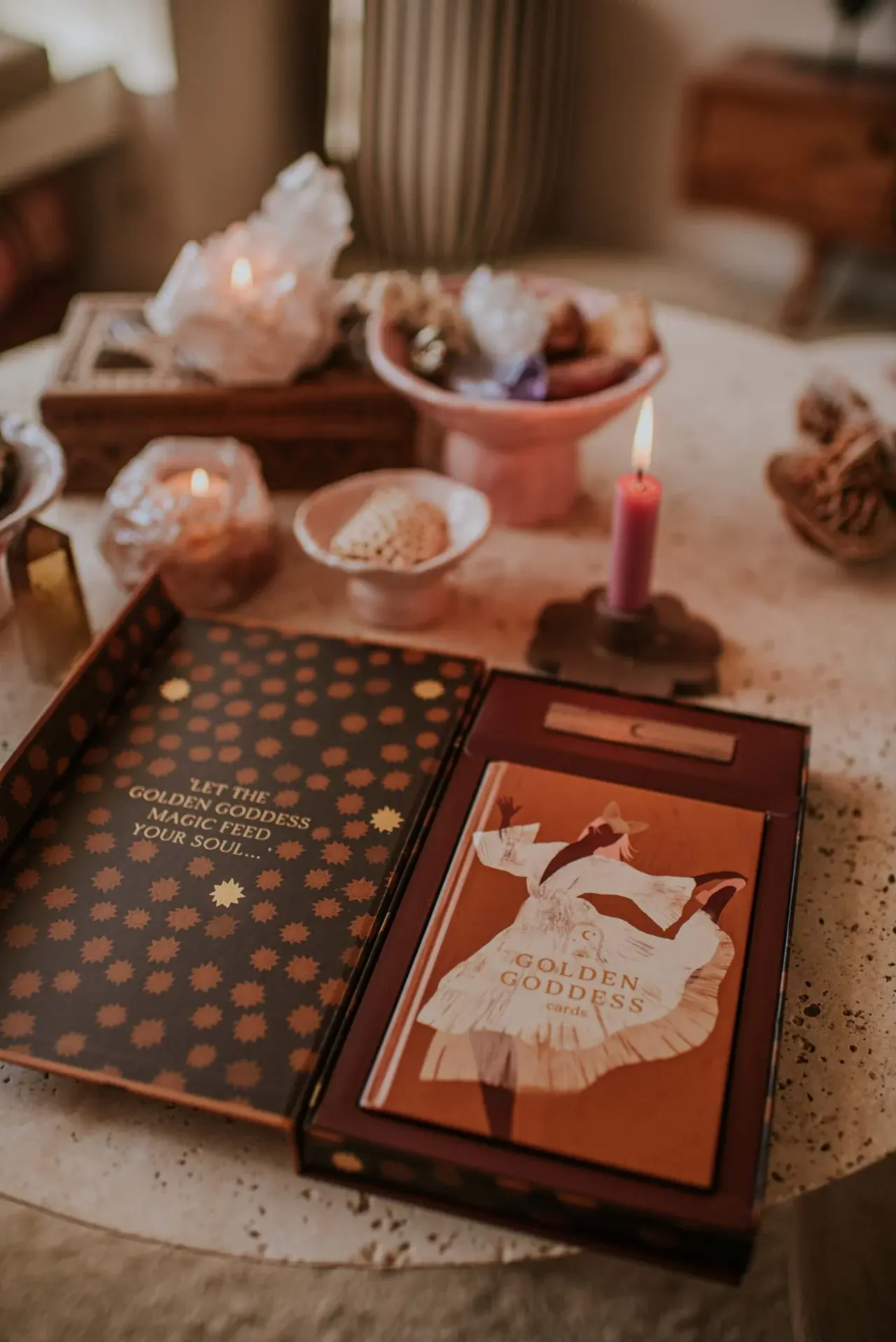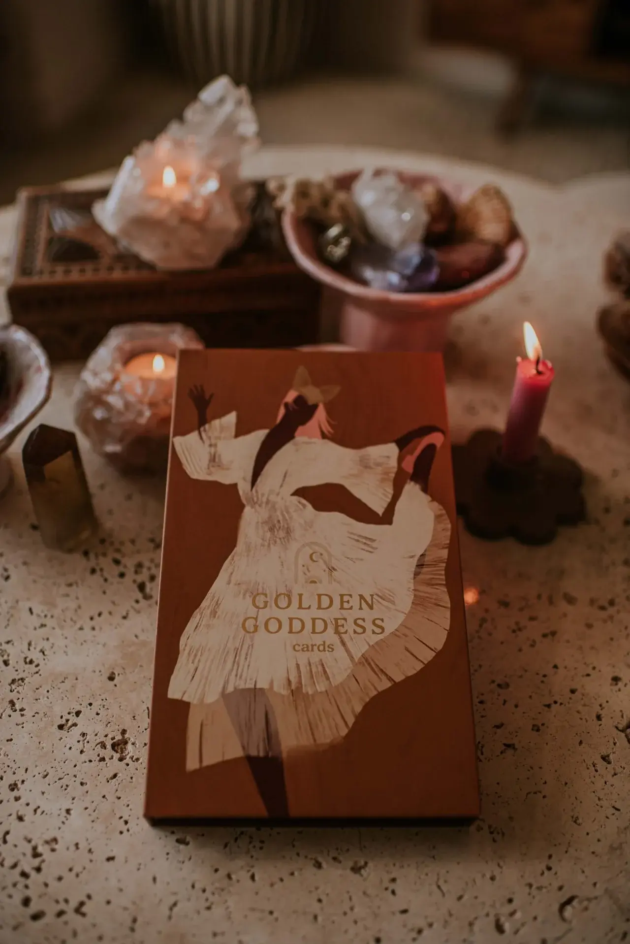 Al de liefdevolle godinnen in dit magische card deck hebben een gezamenlijke missie: ze willen je op een liefdevolle wijze laten ervaren dat diepe wijsheid maar op 1 plek ligt: in jouw hart. Iedere Godin openbaart haar authentieke geheim met liefde aan jou, zodat de Godin in jou stap voor stap wordt aangewakkerd. Naast alle mooie kaarten krijg je een houten houder om je kaart in te zetten en een mooi boek erbij om te lezen welke wijsheid de godin je mee wilt geven. Dus laat je inspireren en meevoeren door alle bijzondere boodschappen van de magische godinnen.