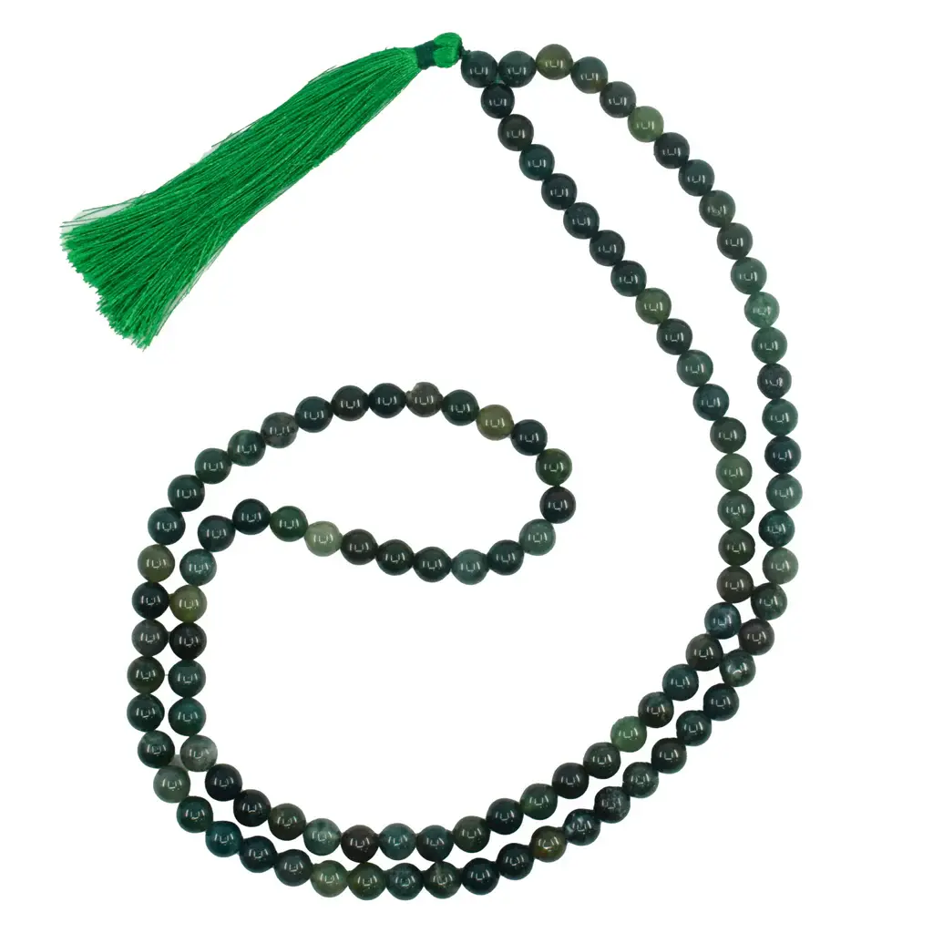 Deze mala van mos agaat straalt een zachte, aardende energie uit die je meeneemt naar de rust van het bos en de stilte van je eigen hart. Geïnspireerd door vreugde, eenvoud en spirituele diepgang – is elke kraal met aandacht geregen tot een sieraad dat niet alleen mooi is om te dragen, maar ook betekenisvol is in je dagelijkse rituelen.