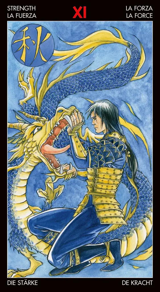 Dit bijzondere tarotdeck onthult een universum van onderlinge verbindingen en symbolische verwijzingen, opgebouwd rond de fantasierijke en epische wereld van het Oosten. De kaarten combineren seizoenssymboliek met oosterse mythologie en spirituele wijsheid.