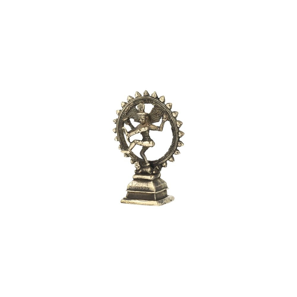 Het compacte formaat maakt dit messing beeldje ideaal voor op een altaar, meditatieplek of als spiritueel decoratief object in huis. Ondanks het kleine formaat is het beeld rijk aan symboliek: de vurige cirkel staat voor kosmische energie, terwijl Shiva’s dans de voortdurende beweging van het leven verbeeldt.