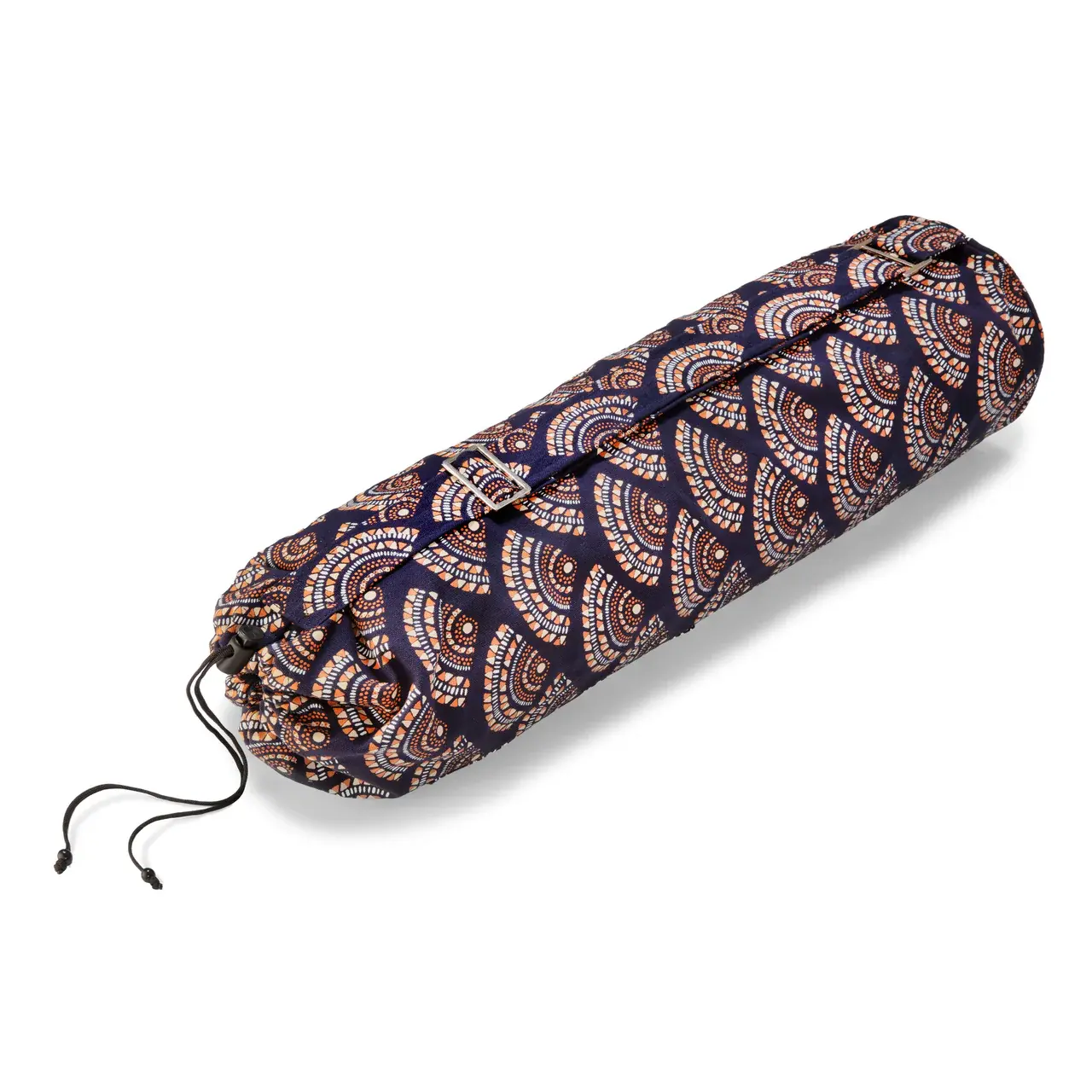 De mooie blauwe kleur met speels motief van de tas geeft je yogamat net wat meer bescherming. Handig in gebruik en perfect om mee te nemen naar je les of als je je mat ergens anders naar toe wilt meenemen.